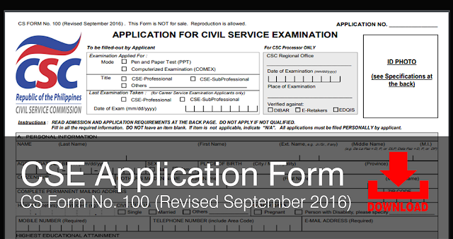 Civil Service Exam Ph Civil Service Application Form Cs Form No