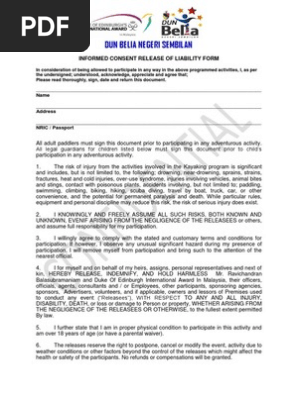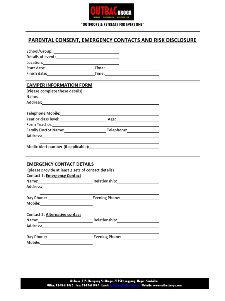 Parental Consent Emergency Contacts And Risk Disclosure Consent