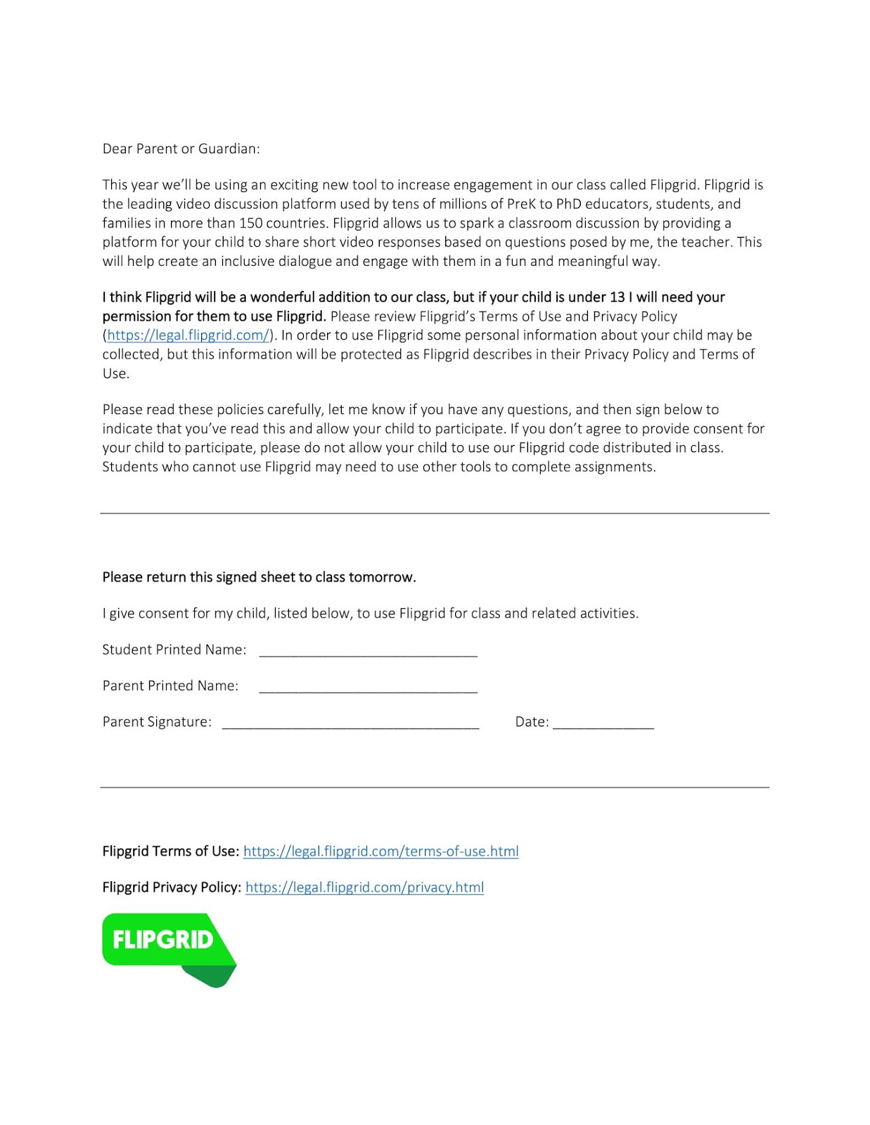 Time To Talk Tech Flipgrid S Consent Form Plus Flipgrid S