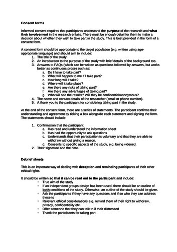 Consent Form Psychology A Level