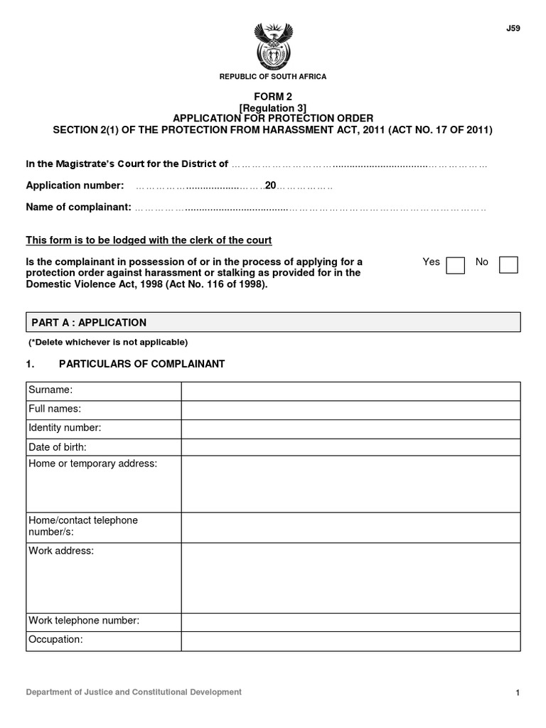 J059 Form2 Protection Order Application Pdf Telecommunication Restraining Order