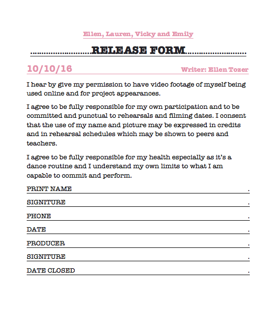 Filming Consent Form For Music Video Fmp Miahamber Media Productions