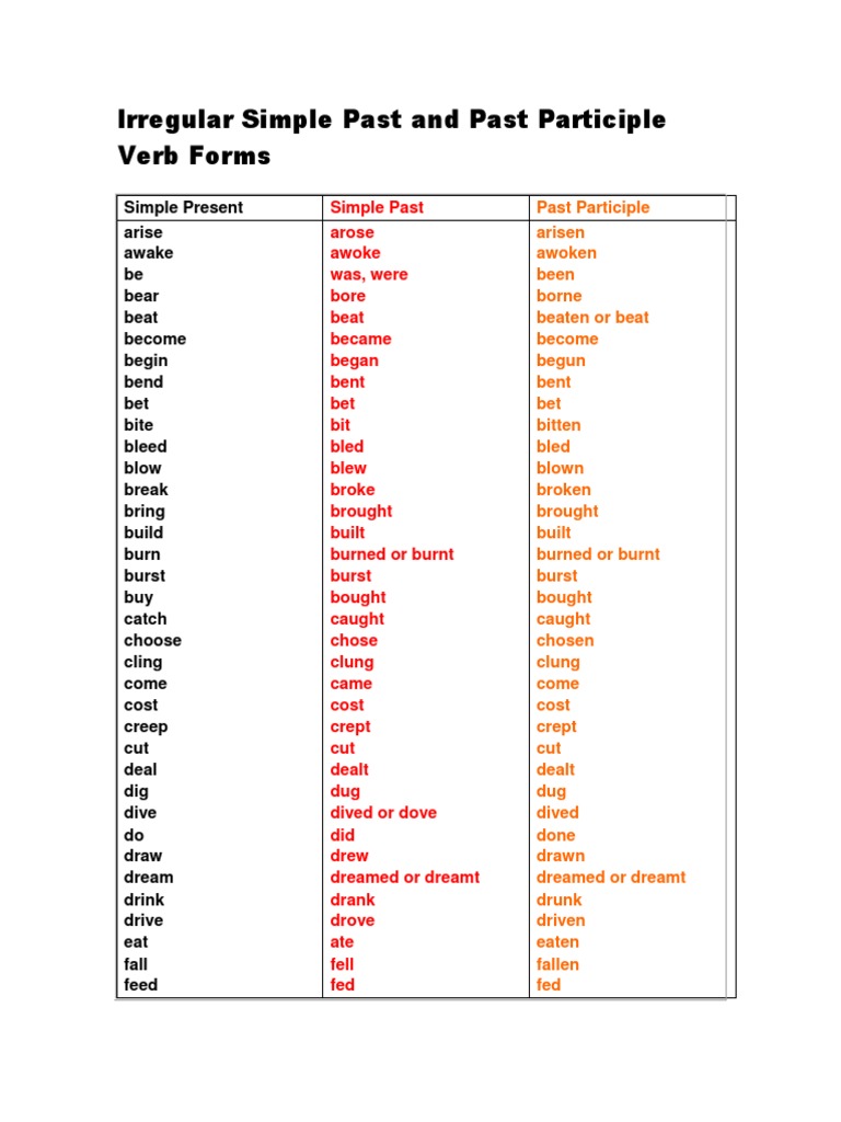 Irregular Past Tense Verbs 75 Important Irregular Verbs List