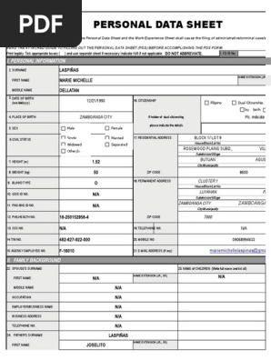 Cs Form No 212 Revised Personal Data Sheet Sample Form Ylyxyv288dnm